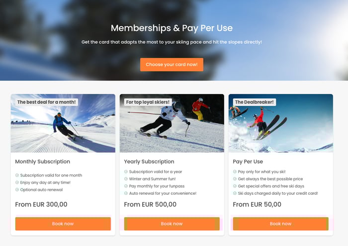 Dank Axess Pay-Per-Use können Ihre Gäste Ihre Dienstleistungen problemlos genießen, ohne dass sie etwas vorab bezahlen müssen. Unsere PPU-Lösung ermöglicht es, direkt zu den Gates zu gehen und später automatisch über ihre Kreditkarte abgerechnet zu werden. Das ist nicht nur äußerst bequem, sondern schafft auch eine enge Bindung zwischen Ihren Gästen und Ihrem Resort. Dank der verschiedenen flexiblen Preismodelle, die unsere Lösung bietet, können sie das Skifahren immer zum bestmöglichen Preis genießen.