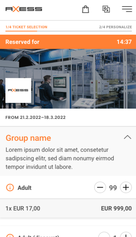 Der Axess VISITOR TICKETSHOP bietet Messezentren die ideale Möglichkeit, Eintrittskarten online zu verkaufen – zur Verbesserung der Besucherdatenqualität, zur Verkürzung von Wartezeiten an Verkaufsstellen, zur Bereitstellung von Registrierungsinformationen und zur Durchführung von Besucherumfragen. Tarife, Benutzeroberflächen und Verkaufsprozesse können individuell an jede Veranstaltung angepasst werden. Deshalb kaufen immer mehr Besucher ihre Tickets bequem online.