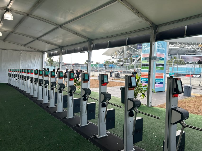 During the F1 Miami event, Axess turnstiles are configured to validate both general admission tickets and staff or media accreditation badges. This dual functionality enhances operational efficiency while reducing the need for separate access control systems.
