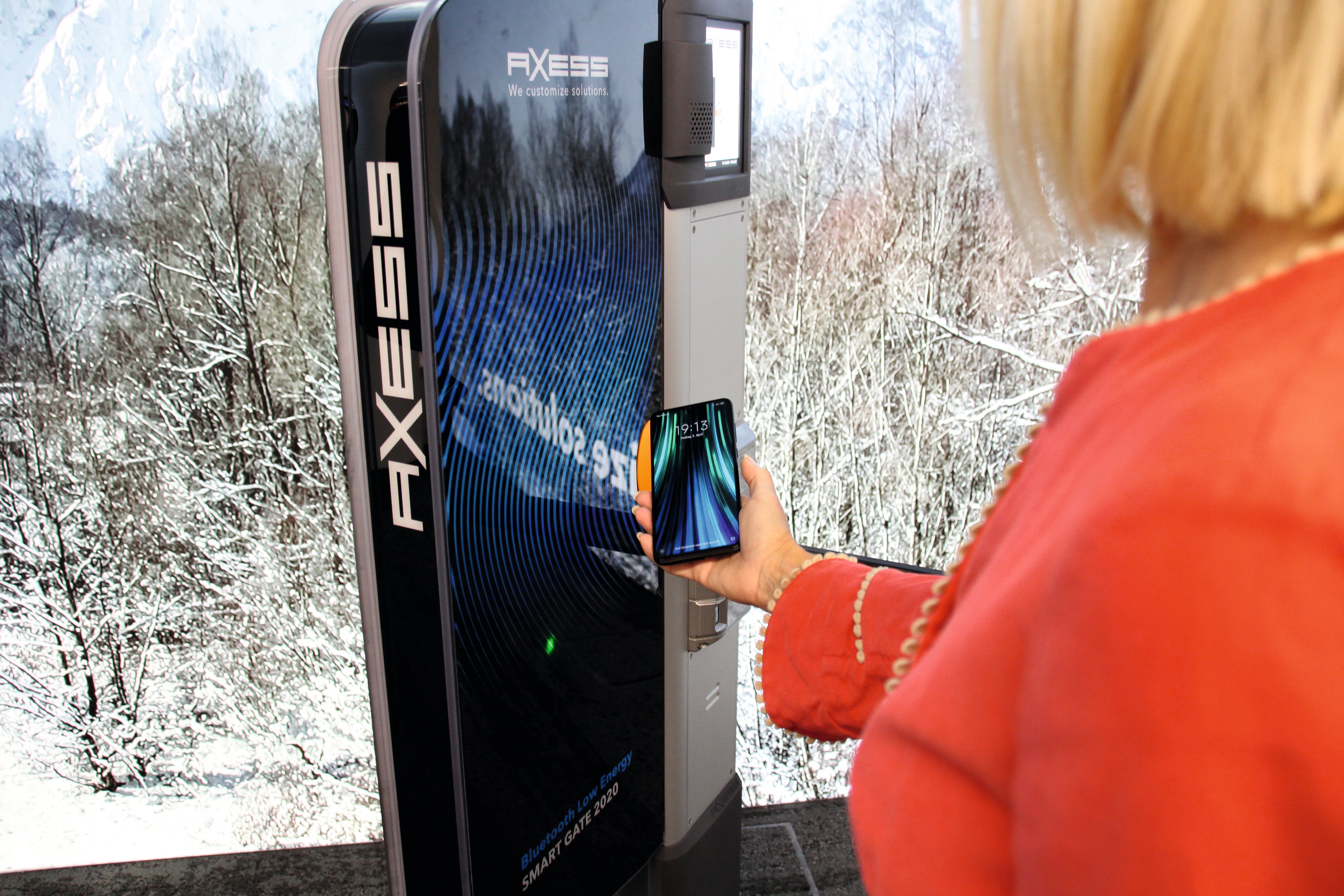The digital alternative to the classic ski pass. Ski areas and their guests always want new possibilities in the area of ski pass management. The international technology trendsetter Axess has developed a new gate that converts the cell phone into a ski pass via Bluetooth. The new AX500 Smart Gate NG BLE enables completely contactless access to the lift.