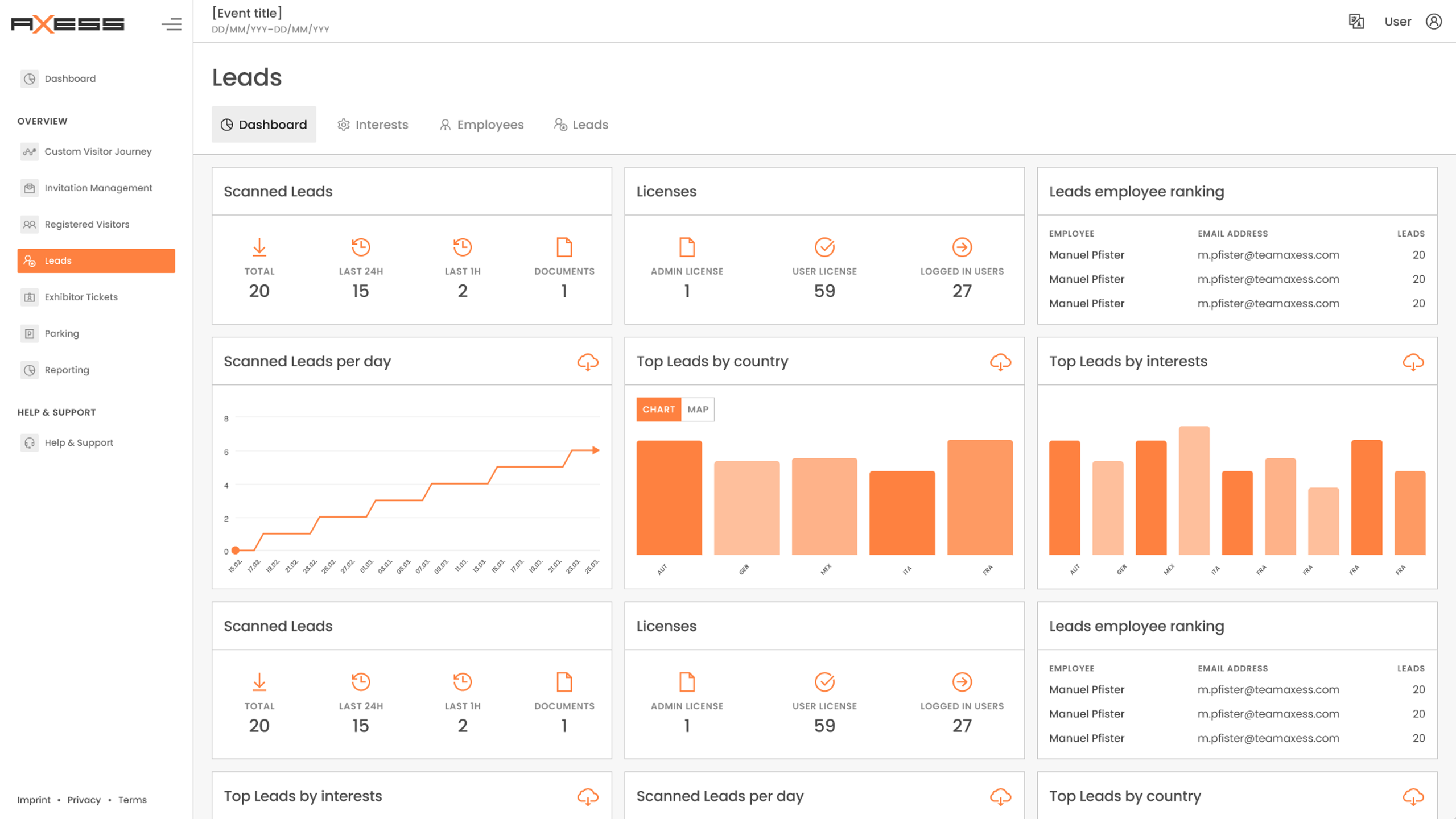 - the easy creation and distribution of the Axess LEADS user accounts to the booth staff.